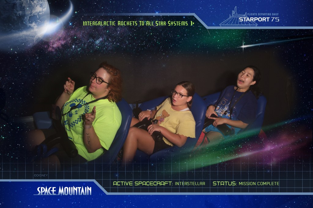 I have a love-hate relationship with Disney World’s version of ‘Space Mountain.’ It is a cool coaster with the rush and special effects, making it feel like you’re in outer space. However, the coaster is really jerky! It’s not nearly as smooth as Disneyland’s version of the attraction. As you can tell by the photo, I was scared for my dear life! No joke, I literally thought I was going to get knocked out of the vehicle; that’s how rough the ride was.