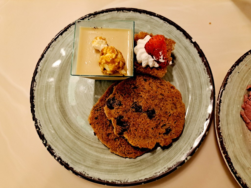 Like I said before, the food was an American buffet. There was ravioli, fruit, fried chicken, cooked potatoes, prime rib, and much more. The Crystal Palace had yummy dessert options too. I had butterscotch creme brulee, strawberry shortcake, and two chocolate chip cookies. The dessert was yummy, but dang, that butterscotch creme brulee was a lot sweeter than I expected it to be.