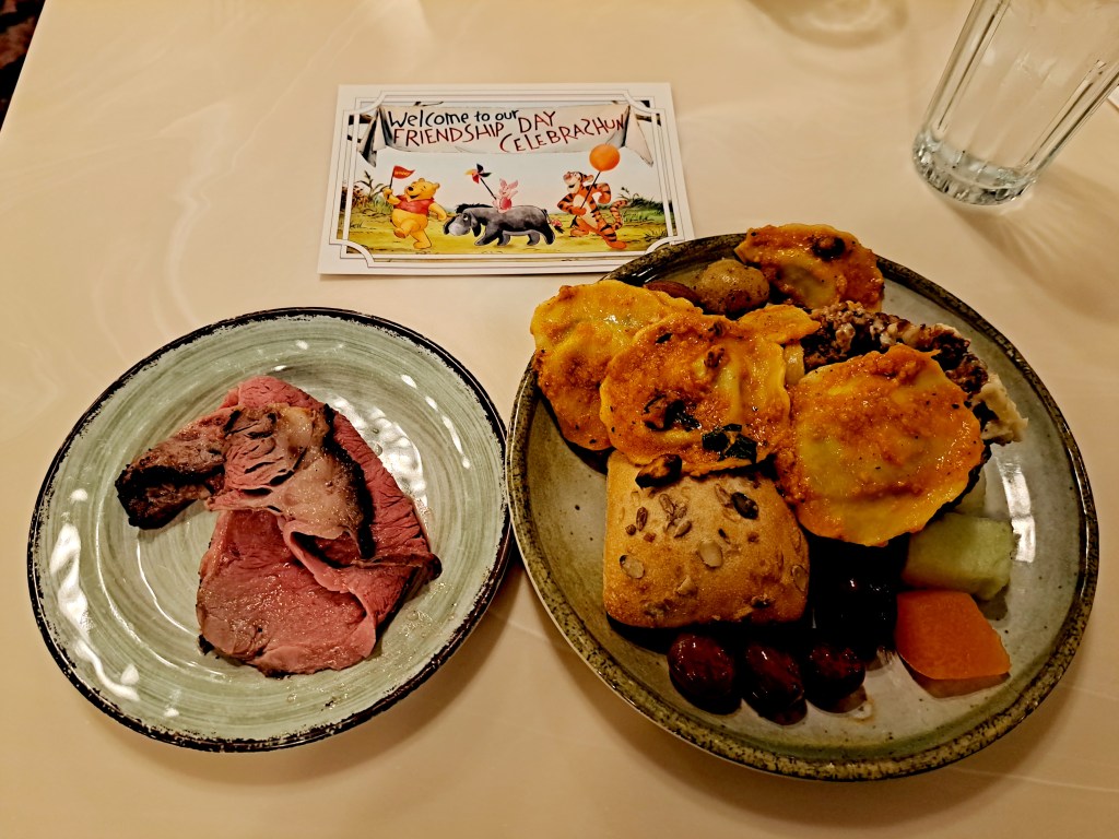 As a real treat, though, I ate dinner at The Crystal Palace in Magic Kingdom with my friend from the Disney Ohana Club. The restaurant had a Victorian-style vibe, it was an American buffet, and Winne the Pooh and his friends were there! I booked the dining reservation a month in advance and our original time was 8:50 p.m., but I was able to check-in 20 minutes before our reservation and we got seated at around 8:30-8:40 p.m.