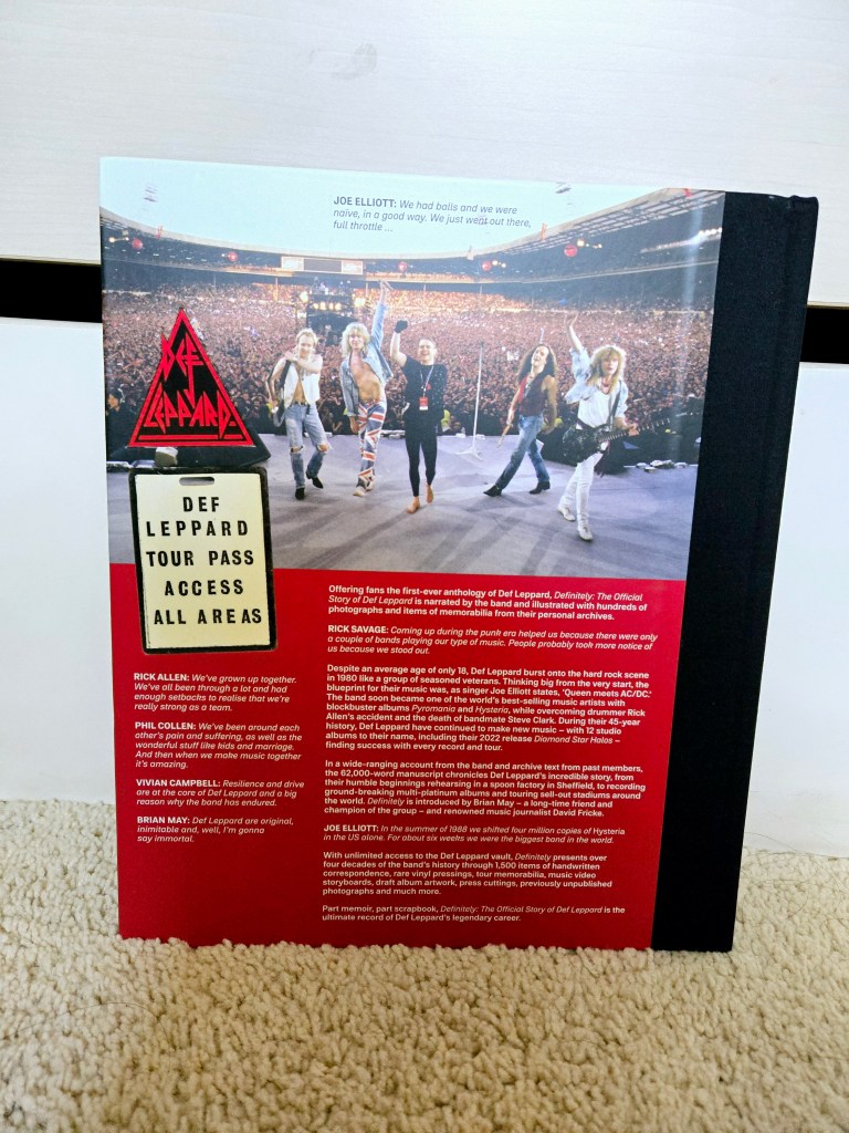 Def Leppard are my favorite band of all time, so I knew I had to buy their Definitely: The Official Story of Def Leppard (2023) book eventually, it was just a matter of when I felt brave enough to part with my money again. Well, I sucked it up last year, started reading the book on January 4, 2025 and finished it a week later. There are a lot of books about the band, but Definitely was a big deal because it was the first Def Leppard autobiography ever and going back even further, the last authorized biography about them was Animal Instinct (1987), before Steve Clark died. Phil Collen did an autobiography titled, Adrenalized: Life, Def Leppard, and Beyond (2015); and if I’m not mistaken, he’s the only Def Leppard member that wrote a memoir. So, at the time, Collen’s book was the closest thing we were going to get to a Def Leppard autobiography. And yet, 10 years later, here we are doing a book review for Definitely: The Official Story of Def Leppard; thank the freaking Lord!