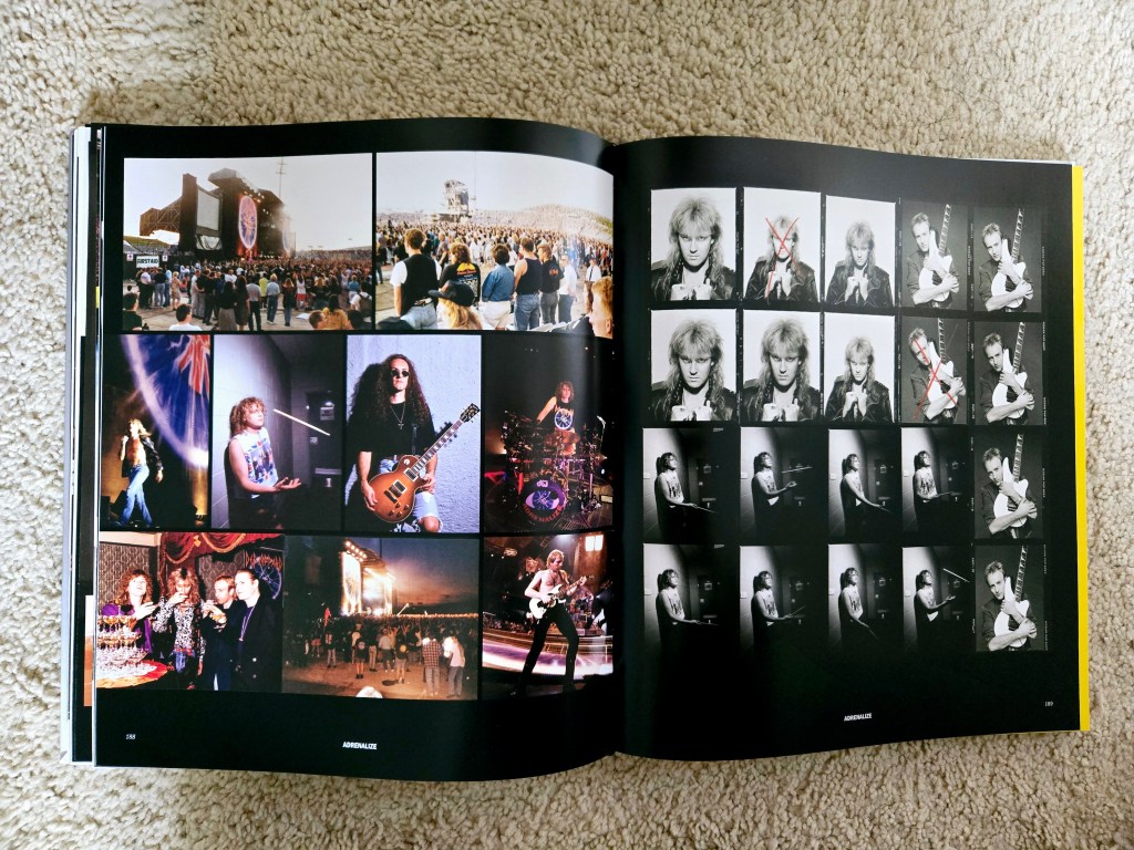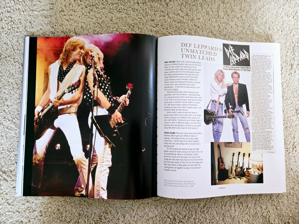 Another thing I love about this book is the band’s honesty. Collen talked about his regrets regarding Clark’s death and what he could’ve done to save his life. Elliott and Campbell both talked about how the band would’ve enjoyed more commercial success had they released Adrenalized in 1990, instead of 1992. The former even going as far as saying the previous album, Hysteria (1987), was two songs too long, which I whole-heartedly agree with. Some of the statements were questionable, like Collen calling X (2002) a natural successor to Hysteria and Elliott claiming that “Pour Some Sugar on Me” could’ve been a Backstreet Boys” song. But hey, that’s their opinion and now I’m curious to hear Def Leppard do a version of Backstreet Boys’ “Larger Than Life.” Thanks, Joe Elliott!