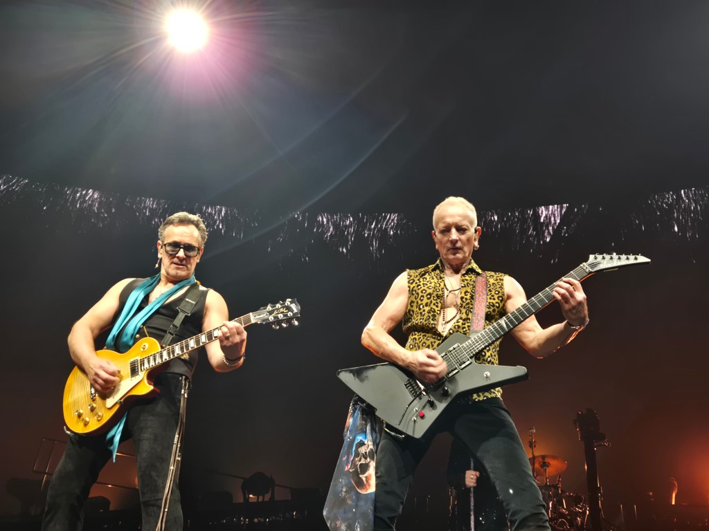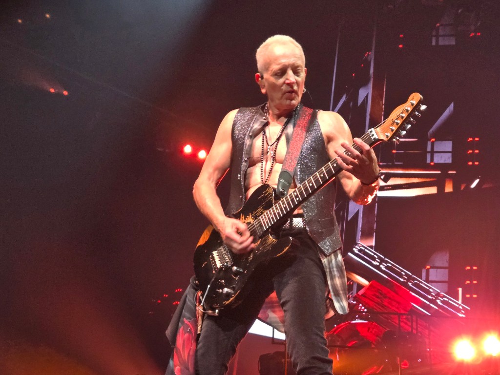 Personally, “White Lightning” was the best song on the entire setlist because it’s such a beautifully well-written song depicting the struggles of late guitarist Steve Clark and before the 2026 Las Vegas residency, the band hadn’t played it since 1993 on the Adrenalize tour. What’s different about this live version, besides the lower key change, is that Collen adds his own spin to the guitar parts he crafted initially in Clark’s playing style. The most obvious is the intro where Collen adds his typical guitar shredding he is known for. The first time I watched the live version on YouTube, the instrumentation sounded jarring because I wasn’t used to the song in a lower key, but the more I listened to it, the more I grew to appreciate the current live version the band created. Listening to the band recount Clark’s battle with alcohol addiction, I can tell every note they played and every word they sang came from their heart. Interestingly enough, “White Lightning” was the loudest song in the setlist, in my opinion, and I bet you that was because of Clark working his magic from rock ‘n’ roll heaven. As for another cool thing about being up close, Elliott got the lyrics for the second verse wrong, which made Collen laugh.