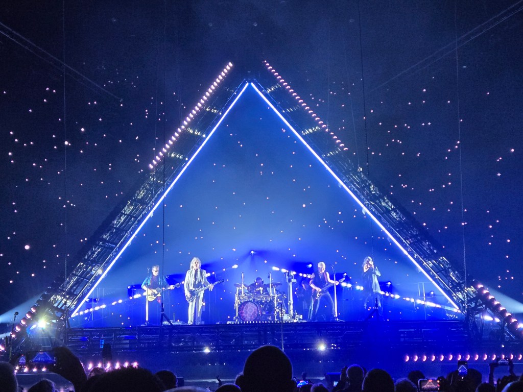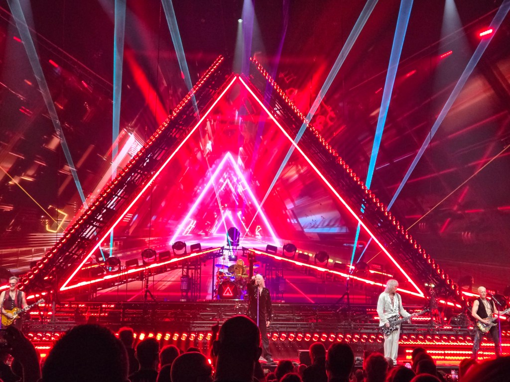 I wouldn’t have minded if Elliott stuck to his word about creating a set that was completely different from what they were doing since they came back from COVID. Instead, they played the same hits they’ve been playing for the past three decades like “Animal,” “Let’s Get Rocked,” “Bringin’ On the Heartbreak,” “Foolin,’” “Armageddon It,” and “Love Bites,” etc. They play “Slang” and “Promises” often enough for them not to be a surprise in the setlist. In fact, if you compare this Las Vegas residency setlist to their setlist for the Diamond Star Heroes: Live from Sheffield (2025) release, the band played 13 of the 17 songs listed for the latter. On the plus side, I’m glad they included two newer songs in the setlist: “Rejoice” and “Just Like 73.” The former looked incredible from a production standpoint with the triangle and space theme, and it’s a killer anthemic opener. The latter is a banging stadium anthem they released in 2024.