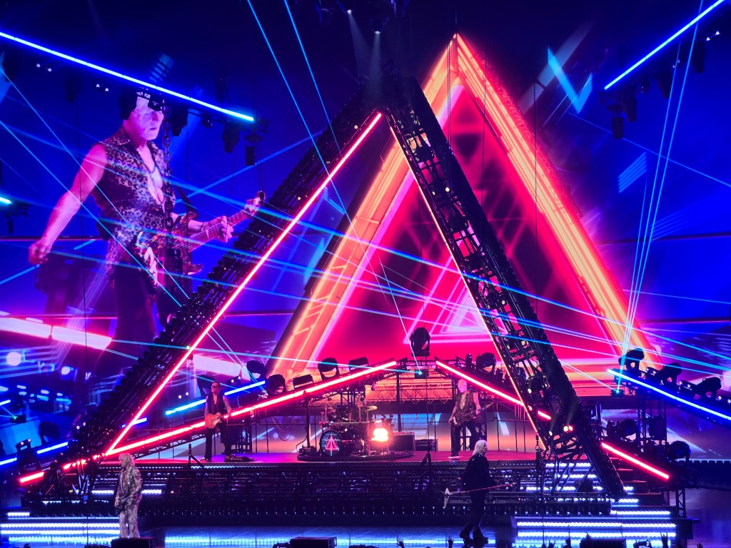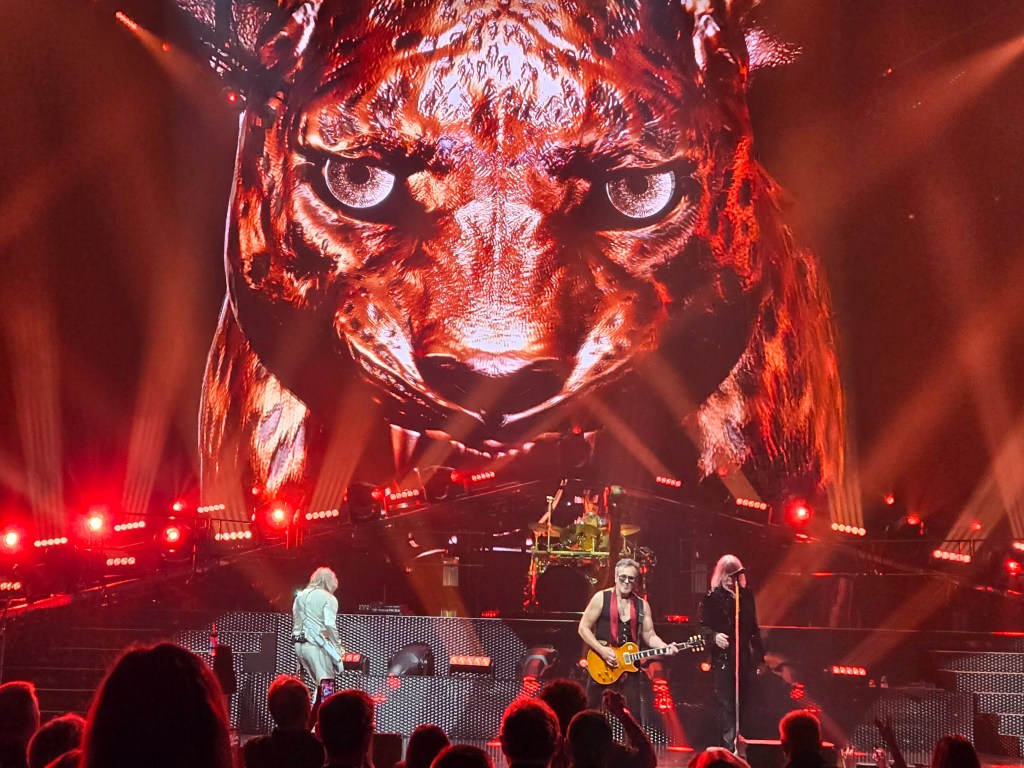 Not sure if it was because section 203 was close to the speakers and sound console, but the drums and bass guitar were so freaking loud that night! Louder than they were on the February 24 and 26 shows; no joke, I felt each beat pounding in my chest throughout the whole show. Like the February 26 show, I noticed new things that I overlooked previously like the lasers for “Love Bites,” “Promises,” and “Hysteria.” On the February 24 show, my dad never noticed the giant leopard that pops out on the screen during the bridge for “Animal,” so I was happy to point it out to him on the February 26 show because he thought it was freaking cool and honestly, so did I! Now, I can’t watch a live performance of “Animal” without seeing that giant leopard pop out of the blocks on the screen. Also, I never thought of this previously, but the broken glass visuals with the pink and purple tones for “Bringin’ On the Heartbreak” remind me of The Rolling Stones’ Hackney Diamonds (2023) album cover.